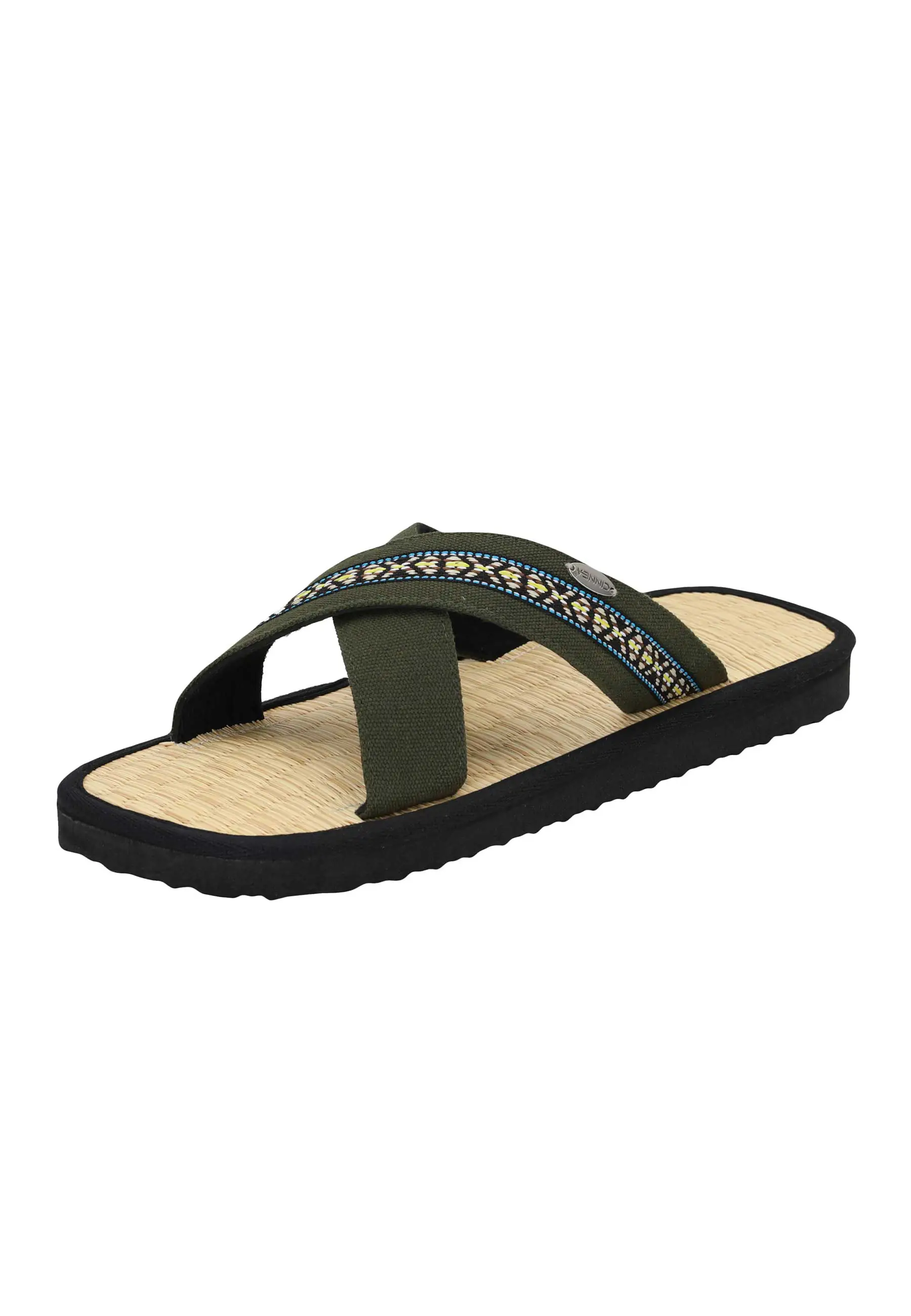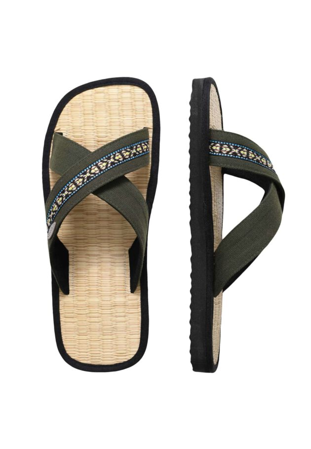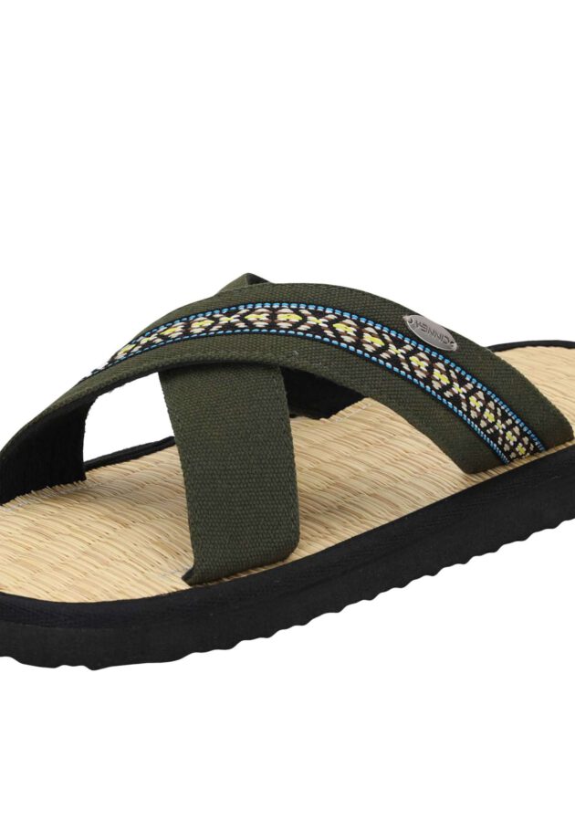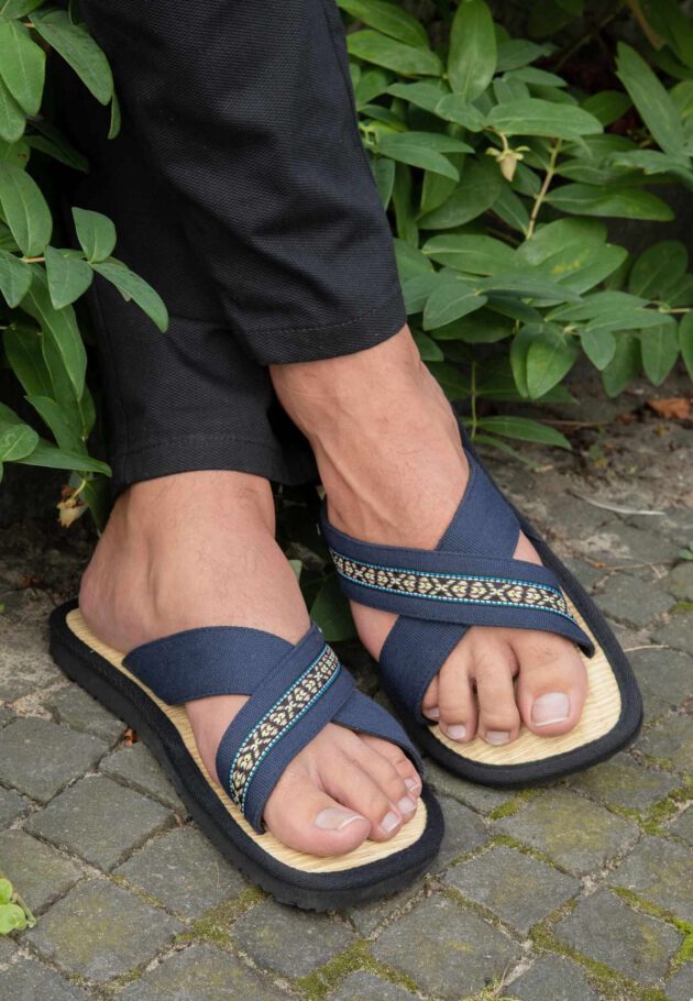 Erfreue dich an hohem Tragekomfort mit unseren Zimt-Latschen „Farso“. Diese Sandalen sind nicht nur bequem, sondern auch stilvoll, mit überkreuzten Baumwollriemen in zwei eleganten Varianten – Royalblau oder Olivgrün mit feiner Musterung. Die 2,5 cm breiten Riemen verleihen den Latschen ein zeitlos modernes Aussehen. Egal, ob sportlich oder lässig-elegant, diese Sandalen passen perfekt zu jedem Outfit.