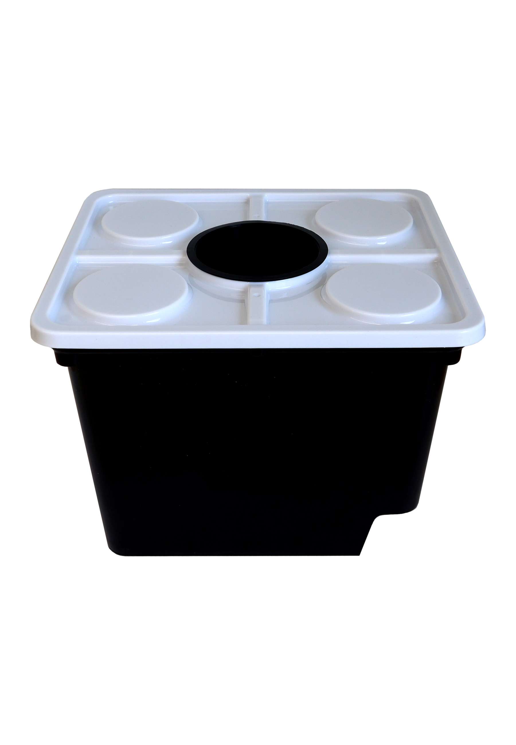 Mit einem Deckel, der Platz für eine größere Pflanze bietet, und einem zweiten Deckel, der bis zu vier kleinere Pflanzen aufnehmen kann, lassen sich verschiedene Pflanzenarten bequem in einem einzigen Behälter arrangieren. Der integrierte Schlaucheingang ermöglicht zudem eine problemlose Verbindung mit weiteren Boxen, sodass du dein Hydrokultursystem jederzeit erweitern kannst.