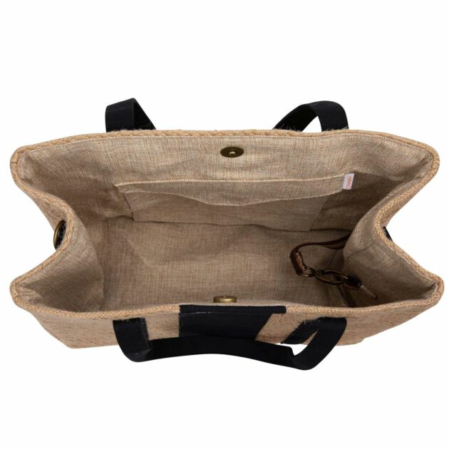 Gefertigt aus robustem, gewebtem Jutestoff, überzeugt sie durch Langlebigkeit und natürliche Optik. Ob beim Shopping, im Büro, am Strand oder beim Sport – diese Tasche ist vielseitig einsetzbar. Dank des abnehmbaren Schulterriemens kann sie wahlweise als Hand- oder Umhängetasche getragen werden.