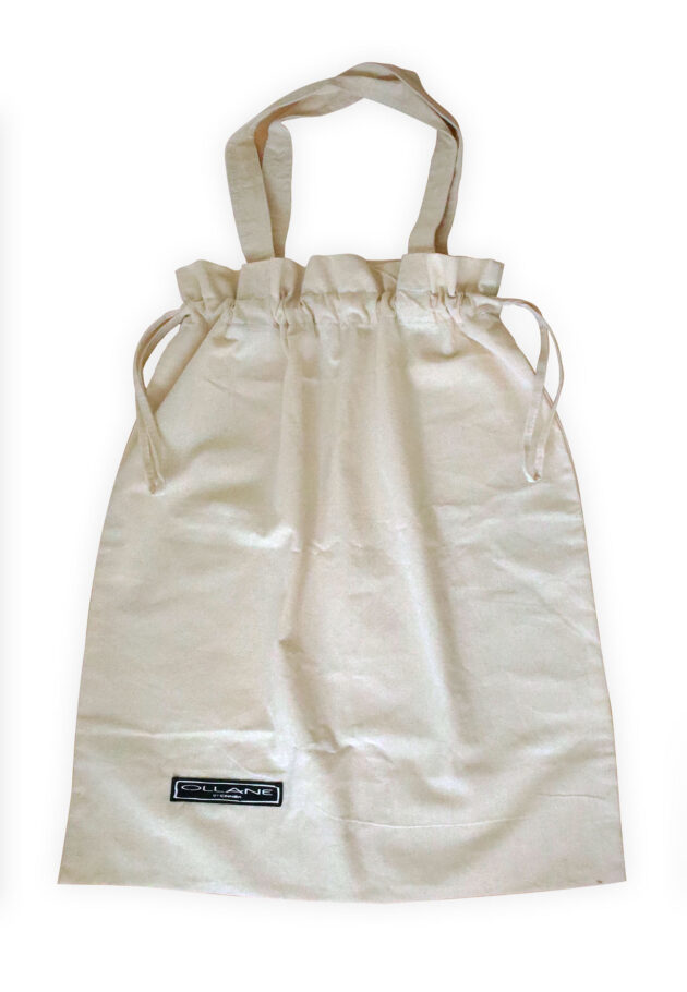 Geliefert wird die Tasche mit einem Baumwollbeutel, der sich ideal als Aufbewahrungs-, Einkaufs- oder Wäschebeutel nutzen lässt – ein durchdachtes Duo für viele Gelegenheiten.