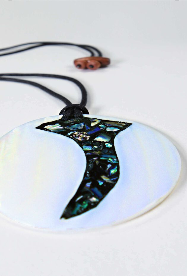 Diese elegante Kette ist dezent und gleichzeitig ein echter Hingucker! Sie hat einen wunderschönen Anhänger aus Perlmutt, der bei jeder Bewegung in irisierenden Weiß- und Cremetönen schimmert. Jedes Stück ist handgefertigt, daher kann jeder Anhänger in Farbe und Muster leicht variieren – ein Unikat. Die Kette aus schwarzem Textil ist ca. 86 cm lang und in der Länge verstellbar. Ideal als besonderes Schmuckstück für dich selbst oder als Geschenk. Geliefert wird die Kette in einer hochwertigen Geschenk-Box.