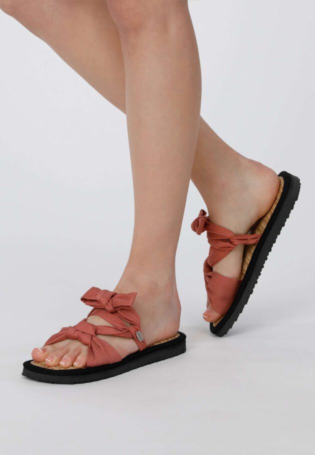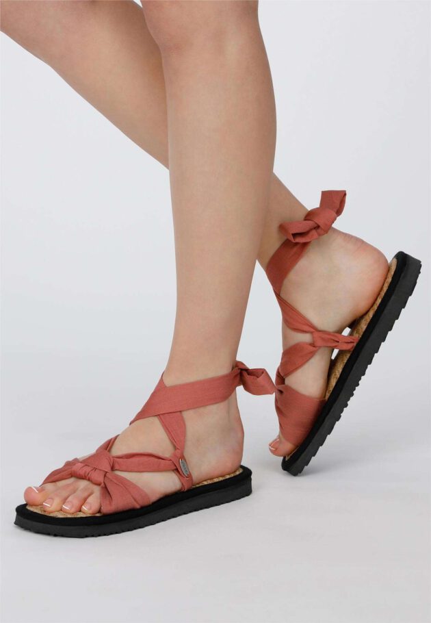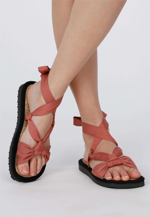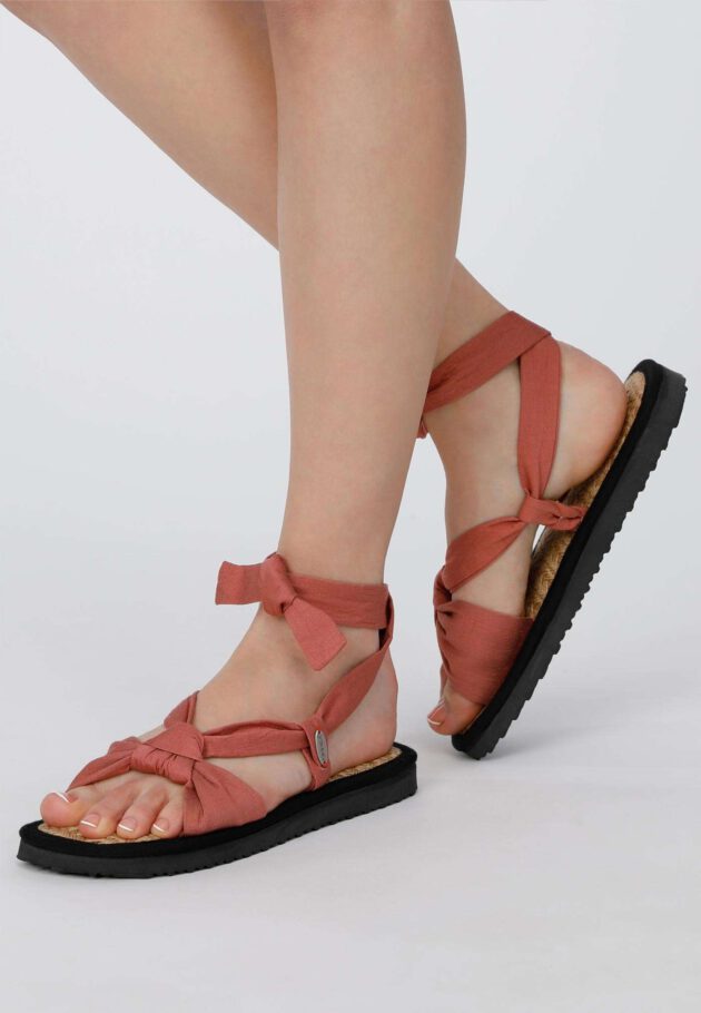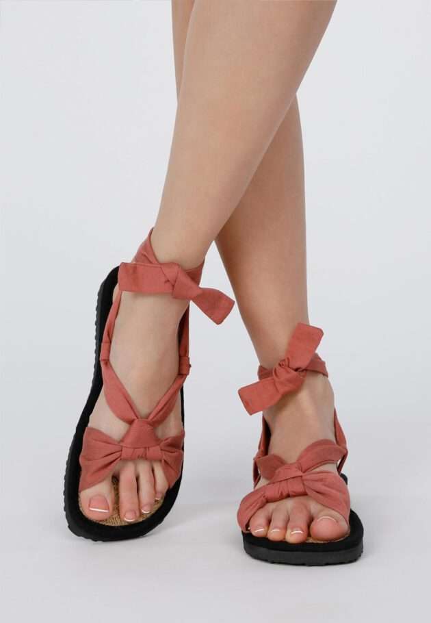 Die weichen, lachsfarbenen Stoffriemen lassen sich individuell um den Fuß binden – ob vorne oder hinten über der Ferse. So kannst du deinen Look immer wieder neu gestalten und den Stil an dein Outfit oder deine Stimmung anpassen.
