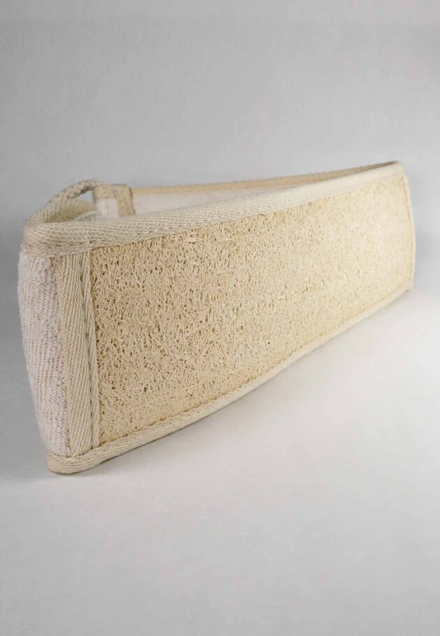 Die Luffa-Oberfläche entfernt sanft abgestorbene Hautschüppchen, Hornhaut, Härchen und kleine Unreinheiten.