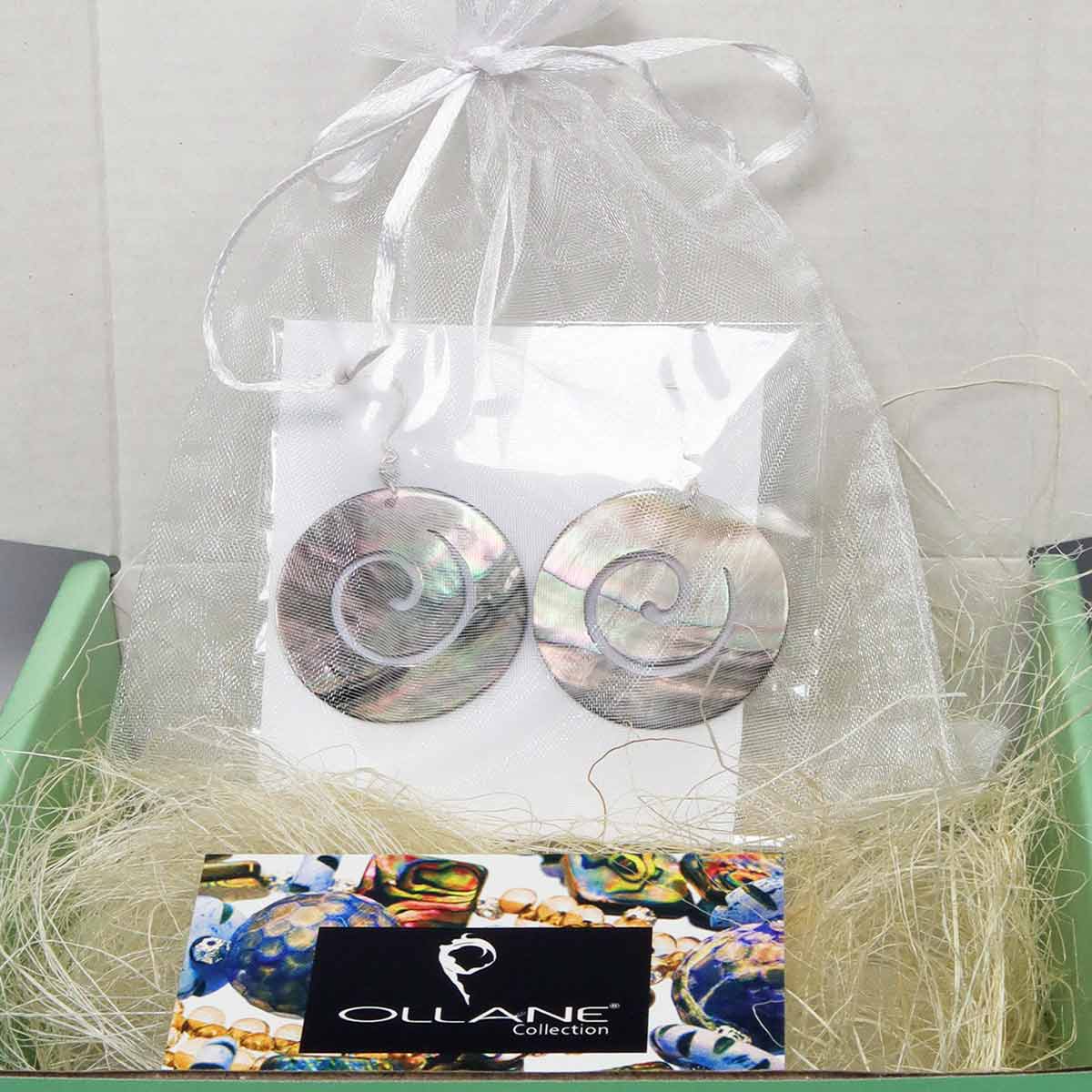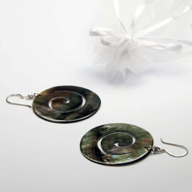 Diese wunderschönen Ohrhänger aus echtem Perlmutt schimmern bei jeder Bewegung in dezenten, irisierenden Grün-, Rosa-, Grau- und Brauntönen. Ein filigranes Spiralmotiv verleiht den Schmuckstücken einen besonderen, eleganten Akzent. Jedes Paar ist handgefertigt und somit ein einzigartiges Unikat – Farbabweichungen sind möglich und gewollt. Die Ohrhaken bestehen aus 925er Silber und garantieren hohen Tragekomfort. Geliefert werden die Schmuckstücke in einem hübschen Schmuck-Etui.
