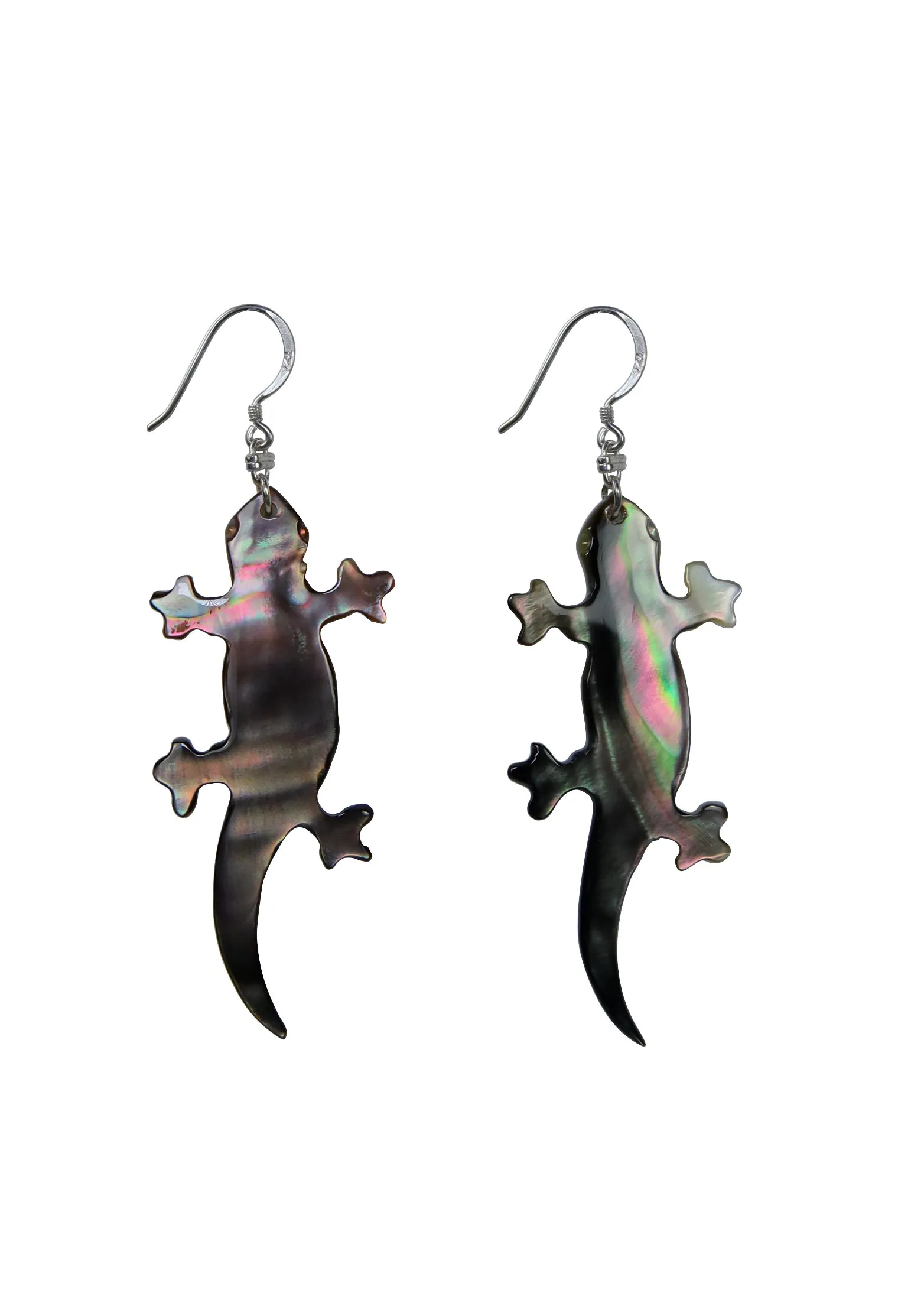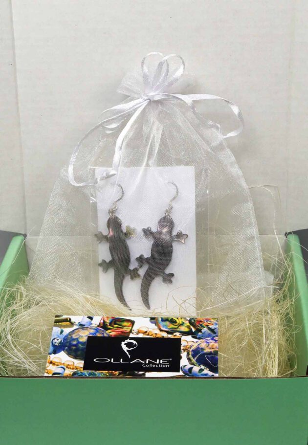 Salamander-Ohrhänger – mystisch & elegant! Passend zum Amulett mit dem Salamander findest du diese Perlmutt-Ohrhänger. Sie schimmern bei jeder Bewegung in dezenten, irisierenden Brauntönen und ziehen alle Blicke auf sich. Die detailreiche Form des Feuersalamanders steht für Entdeckungslust, Neugier und mutige Abenteuer. Setze stilvolle Akzente mit diesem besonderen Schmuckstück.