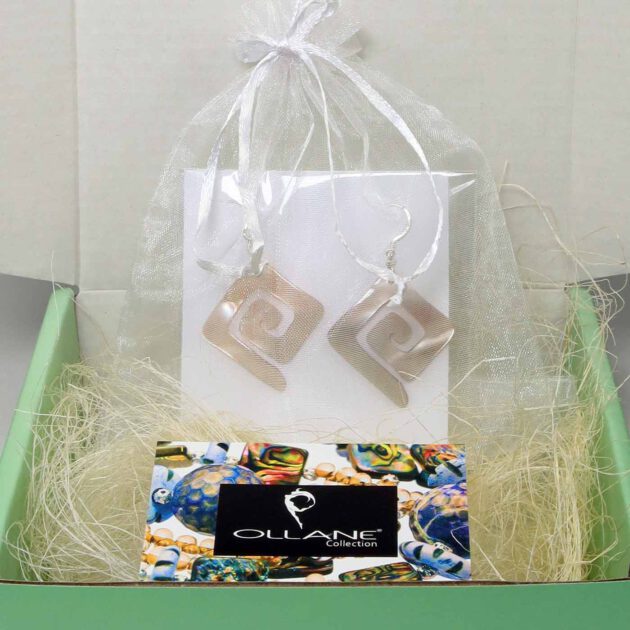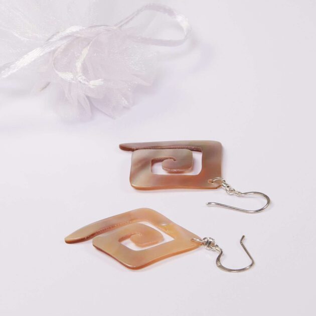 SEELENKRAFT – was für kraftvoller Ohrschmuck! Diese wunderschönen Ohrringe aus echtem Perlmutt schimmern bei jeder Bewegung in dezenten, irisierenden Gold- und Brauntönen. Das Quadrat steht für Perfektion und die irdische Existenz. Kombiniert mit der Spirale der Evolution symbolisieren diese wunderschönen Ohrhänger die nie endende Lebenserweiterung in Richtung Perfektion. Die Umwandelbarkeit. Fühlst du dich statisch oder bist du schon im Wandel zur Perfektion?