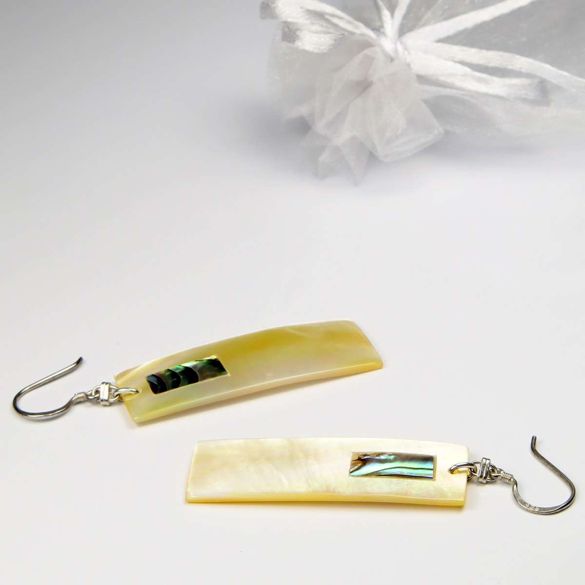 Entdecke unsere einzigartigen Perlmutt-Ohrhänger – handgefertigt aus echtem Perlmutt mit irisierendem Schimmer in Weiß, Grün und Rosé. Jeder Ohrhänger ist ein Unikat, die zarten Ohrhaken aus 925er Sterlingsilber sind hautfreundlich und komfortabel zu tragen. Die Ohrhänger werden in einem hübschen Schmuck-Etui geliefert – perfekt als Geschenk oder für dich selbst. Maße ca. 4,0 x 1,5 cm (ohne Haken). Setze jetzt stilvolle Akzente mit diesem edlen, handgefertigten Schmuckstück!