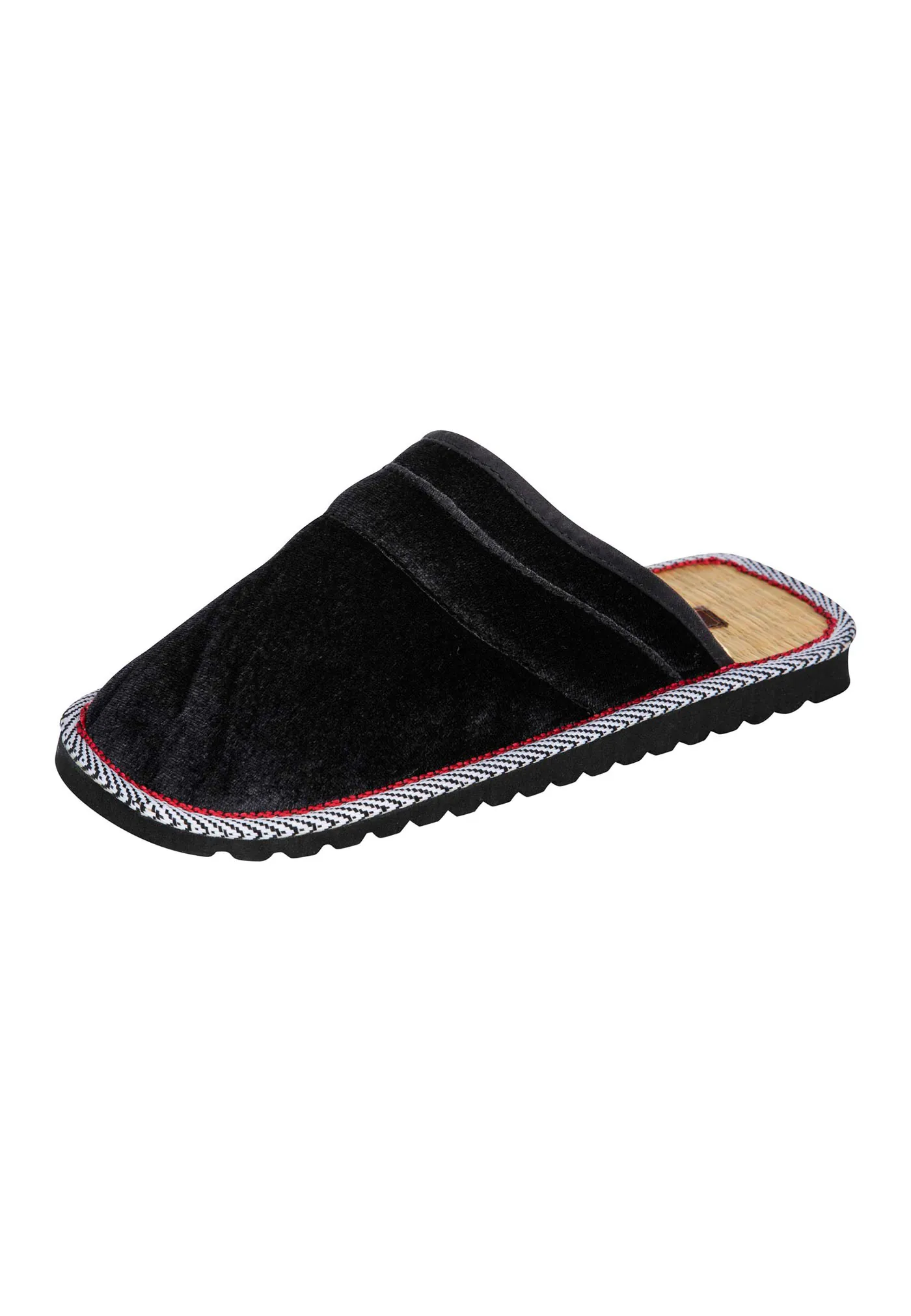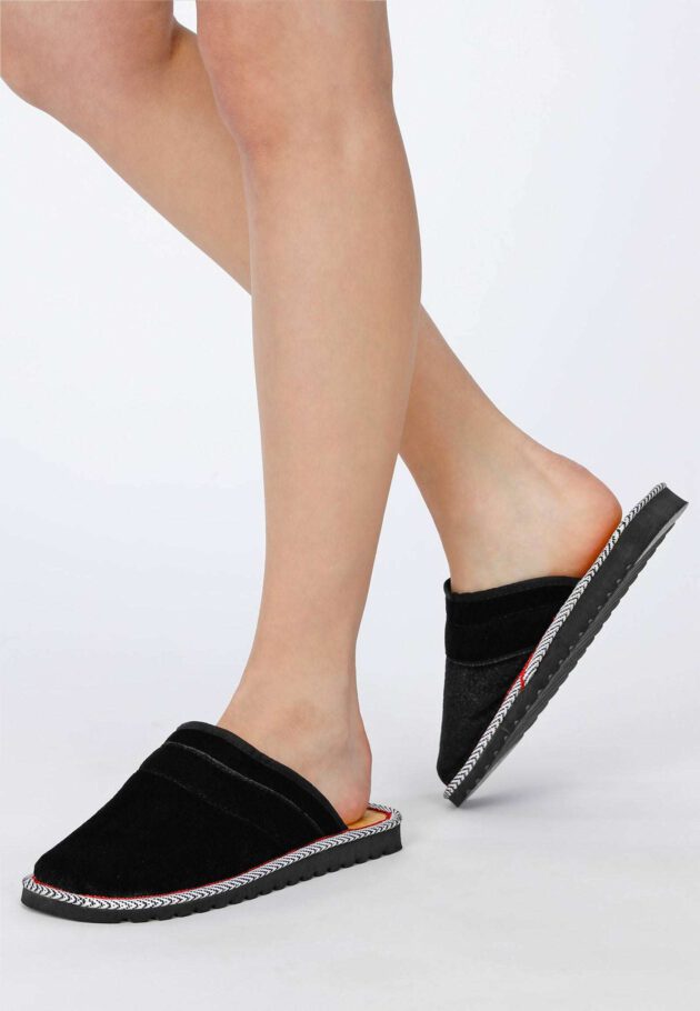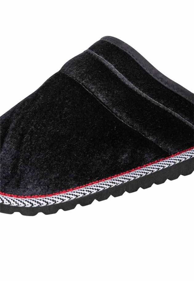 Das Obermaterial ist weicher Samtstoff, der angenehm soft für den Fußrücken ist.