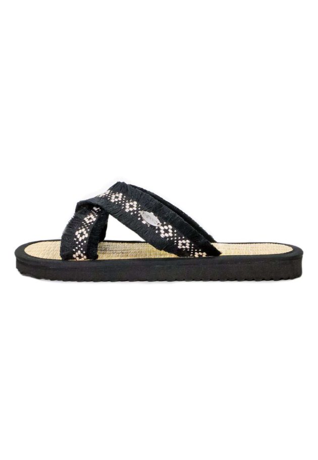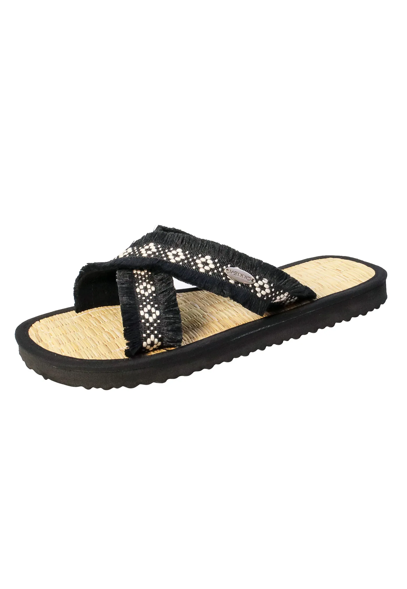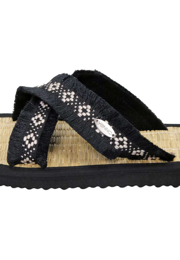 Schilder: Binsen-Latschen, Damen, Kreuzriemen